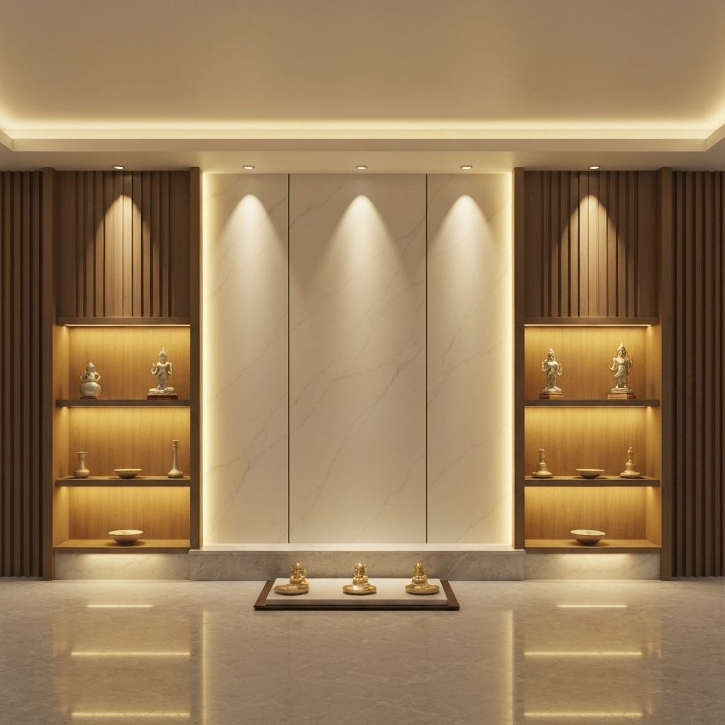 Isliye hum design karte hain Vastu-perfect, space-smart, emotionally uplifting pooja rooms jo: