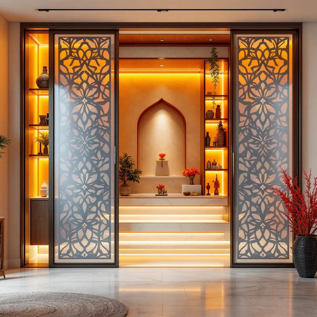 4. Sliding/Foldable Temple Doors – Modern Compact Genius