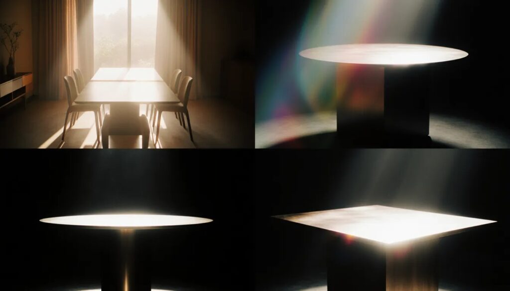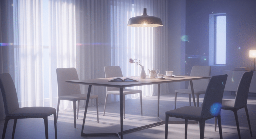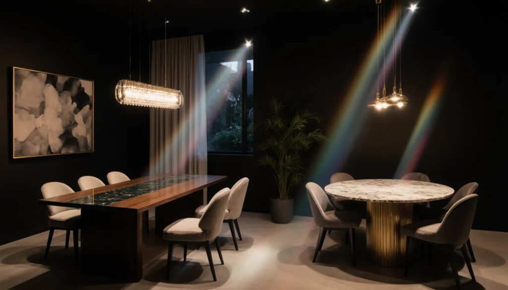 - Round Table: Small/square spaces ke liye perfect — corners soft lagte hain, energy flow better hota hai (even Vastu-friendly for some directions).