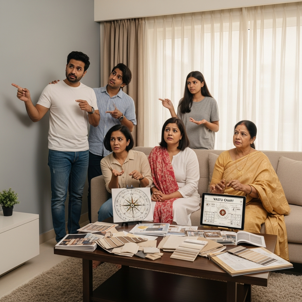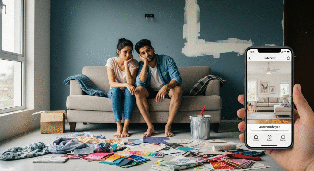 Truth is — Zyada inspiration means zyada confusion. Aur upar se dadi-maa, mausa-ji, aur dost ka “expert” advice jo 90s ke trend se aata hai… result? Hall ka makeover ek patchwork quilt ban jata hai — koi connection nahi, koi wow factor nahi.