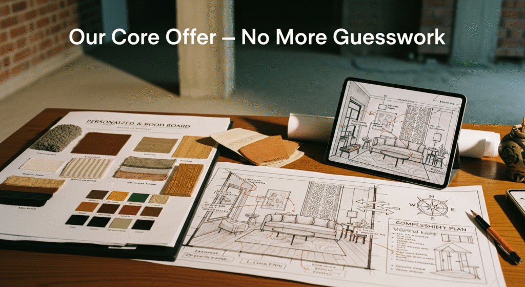 At Chiraniya Consultancy, hum apke liye Done-for-You Living Room Package banate hain: