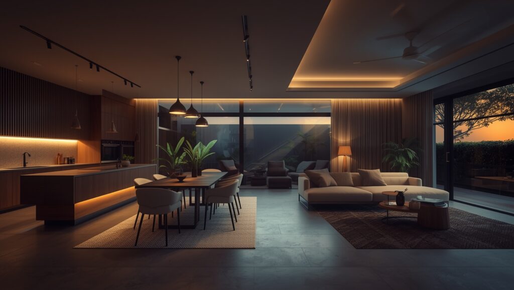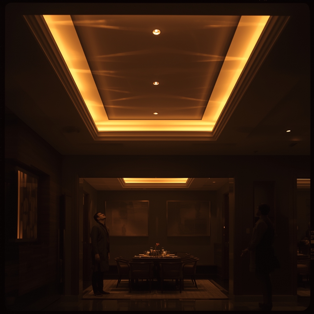 Story: Imagine ki guests aapke ghar aate hain, dining me enter karte hi unka head automatically upar chala jata hai—tray ceiling me soft golden light glow kar rahi hai. Conversation slow ho jaata hai, log enjoy karte hain. Bas, yeh hai impact.