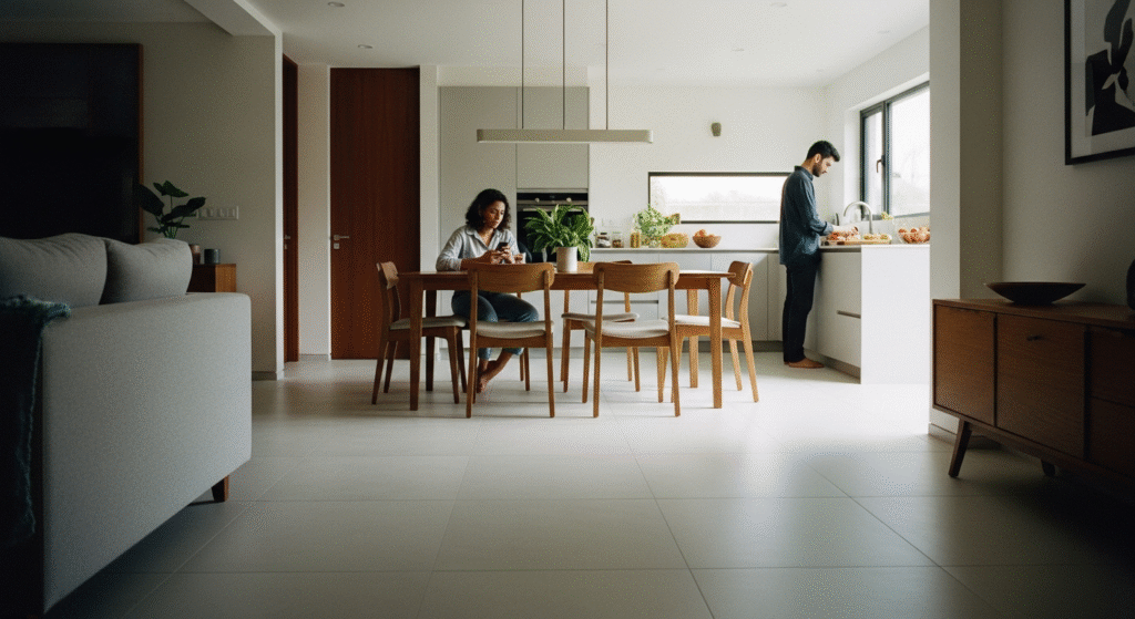 Story: Dining table ka polish living room ke center table se match hota hai, chairs ke legs kitchen counter ke tone me hote hain—pure ghar ka look ek symphony ban jata hai.