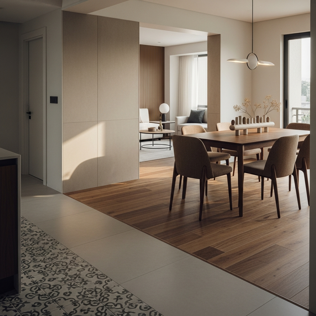 Pain Point: Same flooring har jagah dining ka charm dilute kar deta hai.