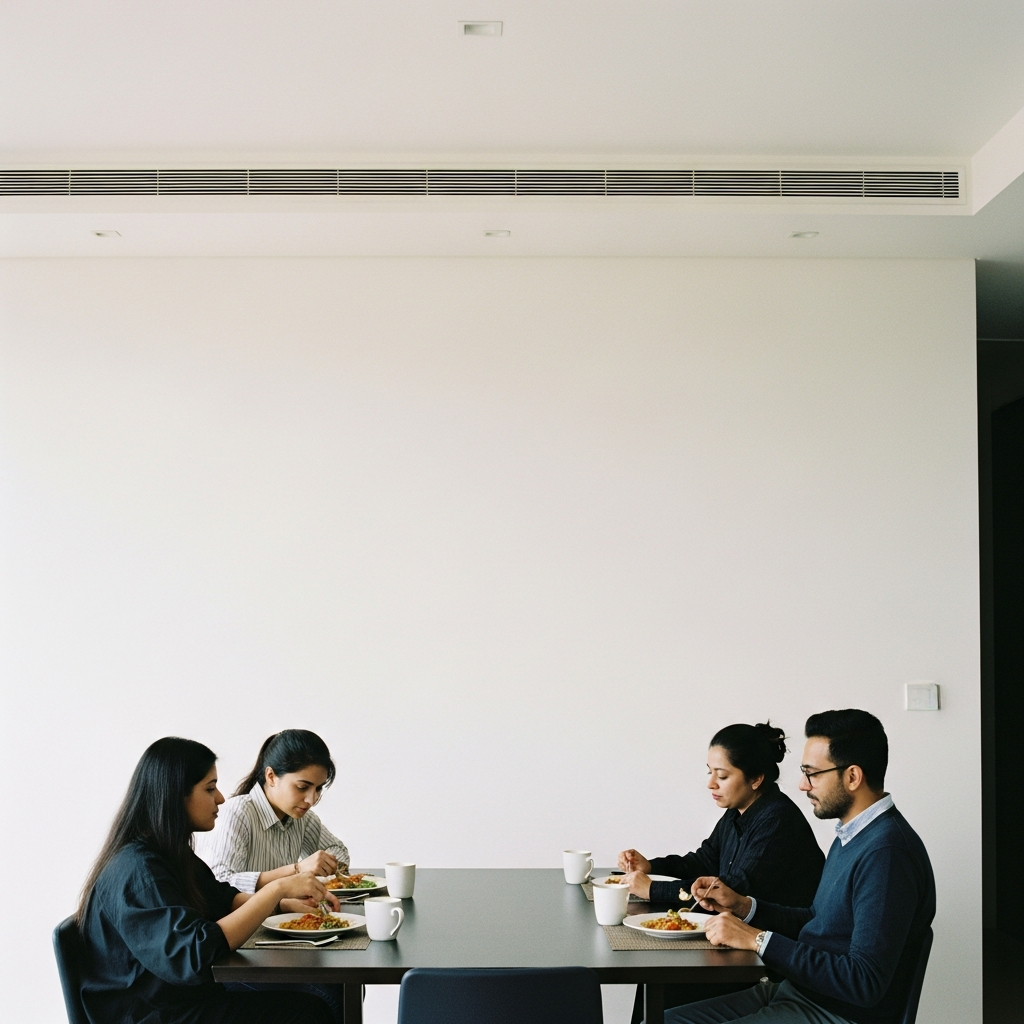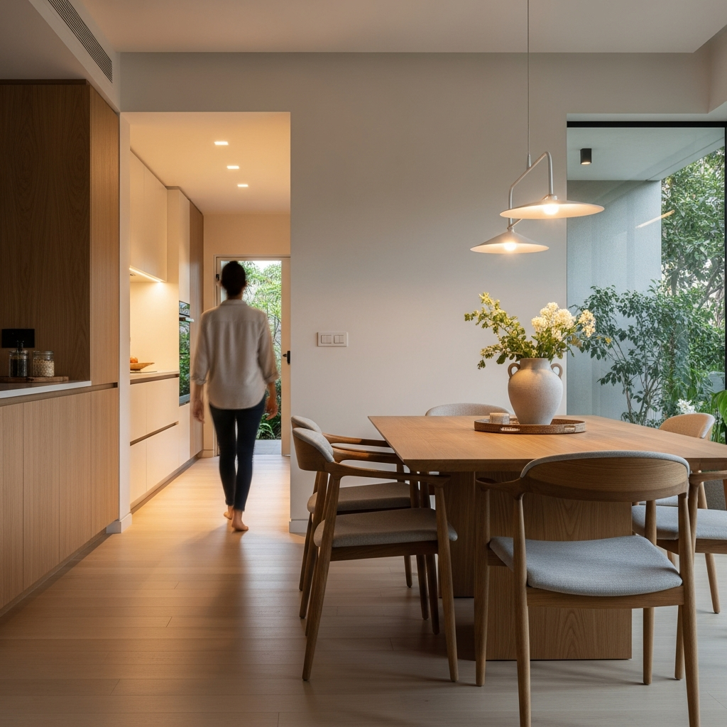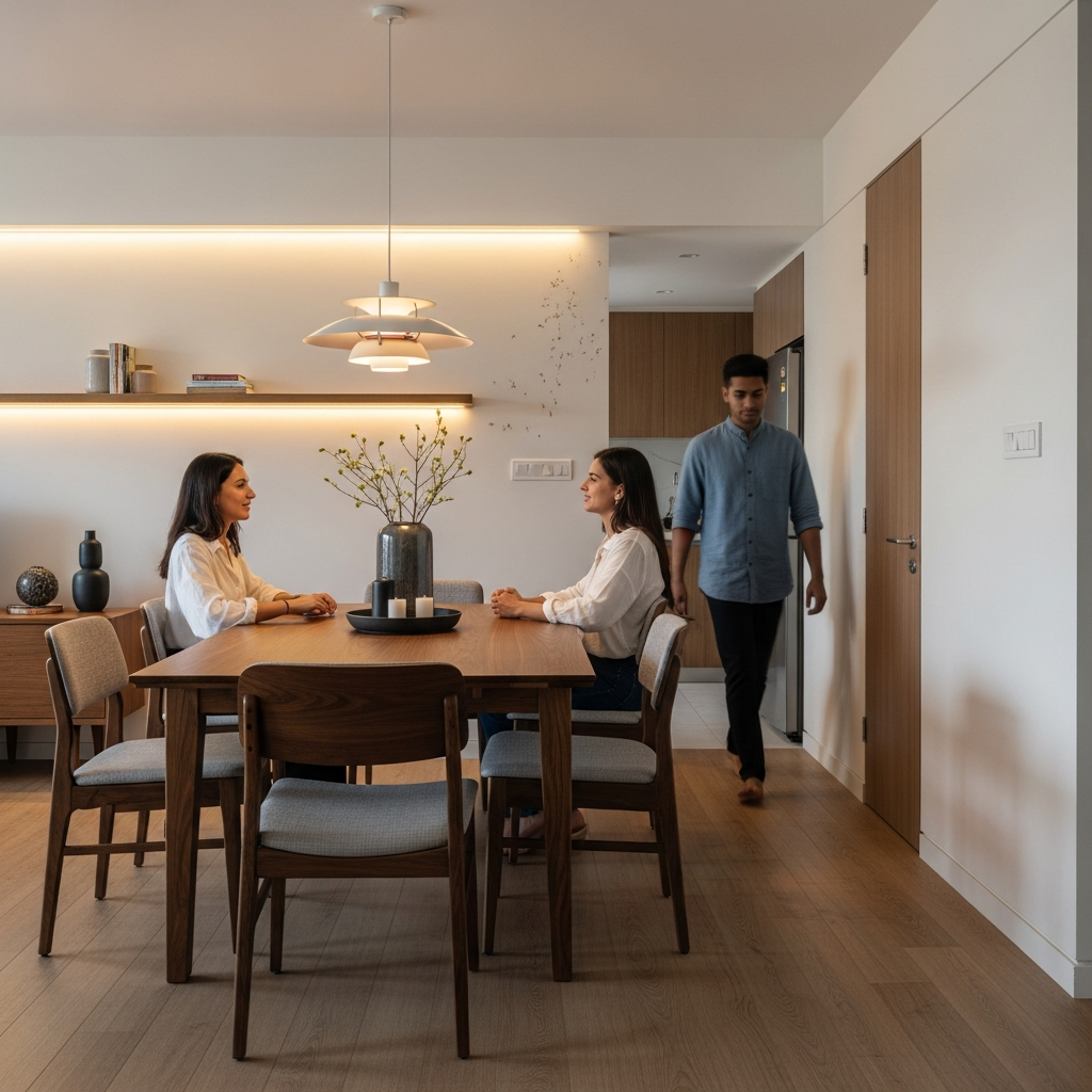 Aur jab open layout me dining ko proper identity nahi milti, toh woh sirf ek passing zone ban jata hai—jahan log bhojan jaldi khaa ke turant uth jaate hain.