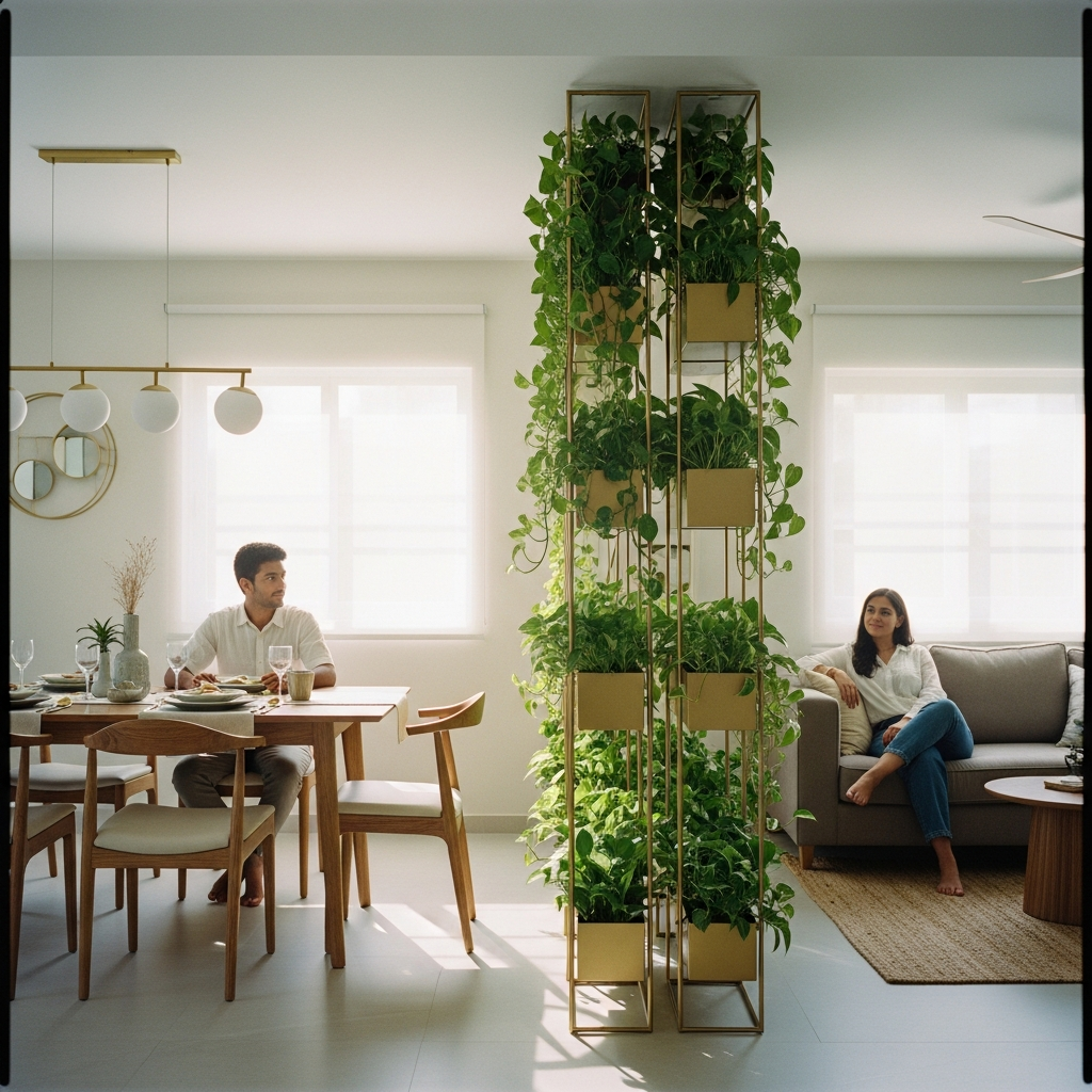 Solution: Low-maintenance indoor plants, vertical gardens, and hanging planters for soft, breathable partitions.