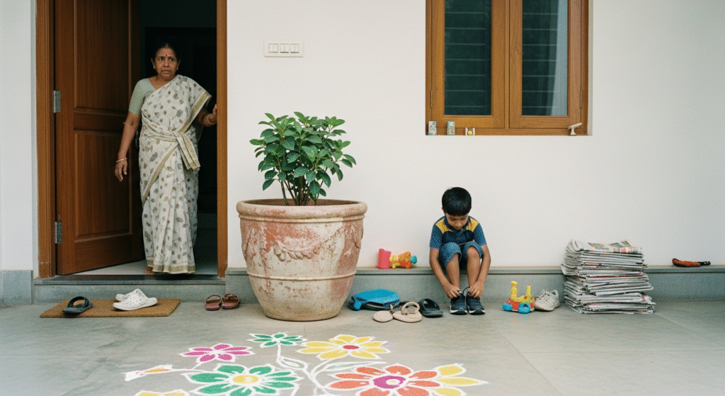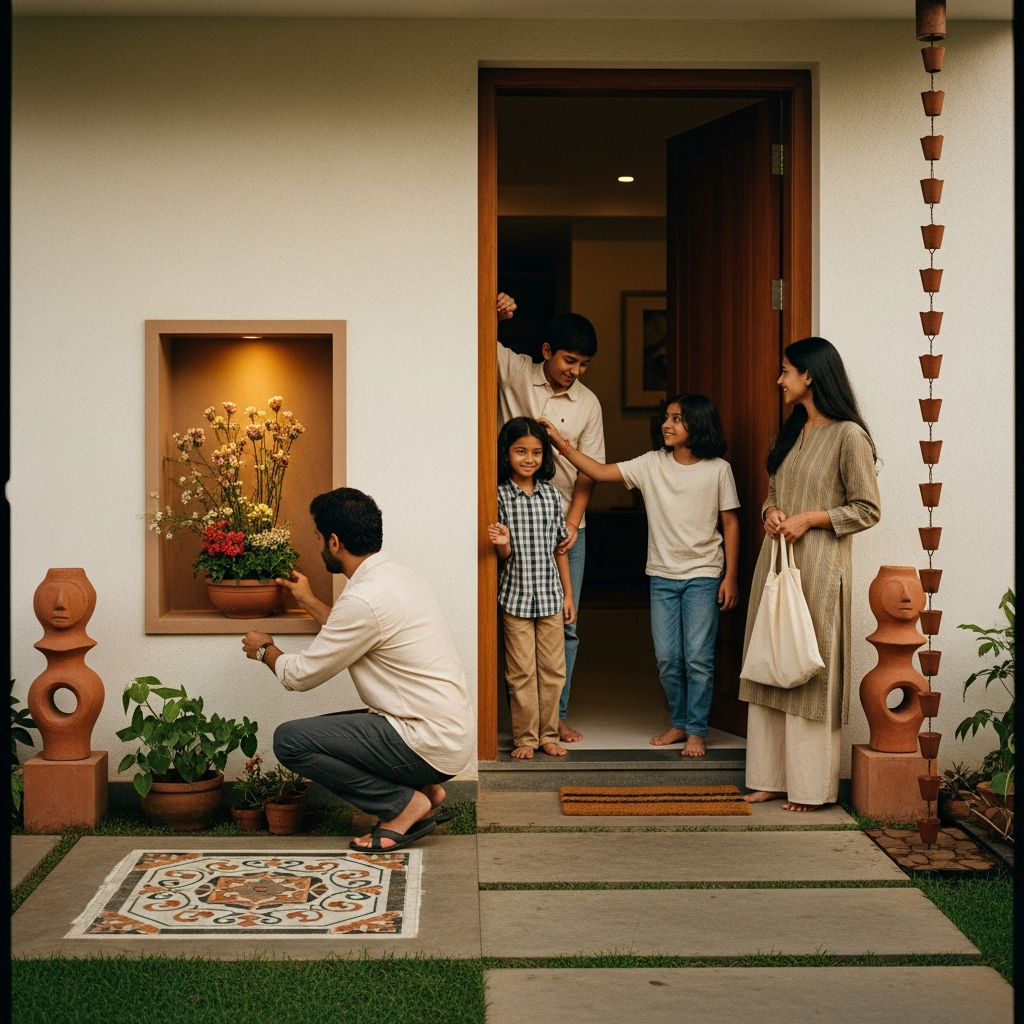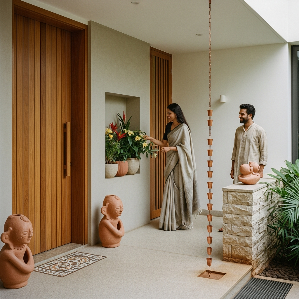 Eco Add-On: Rain-chain near entrance for monsoon water harvesting + visual charm.