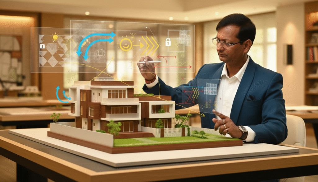 ❌ “Bas Vastu ke liye direction fix kar lo” → Wrong, ventilation, light, privacy & security equally important.