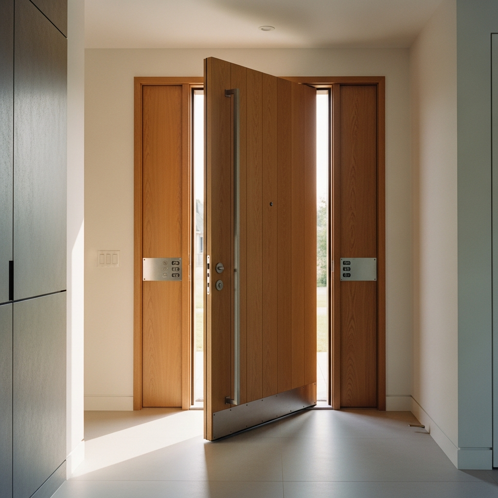 Tech Upgrade: Soft-close hinges, multi-point locking system, and concealed door closers aesthetics + security me 10x improvement laate hain.