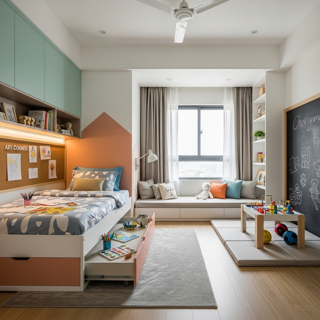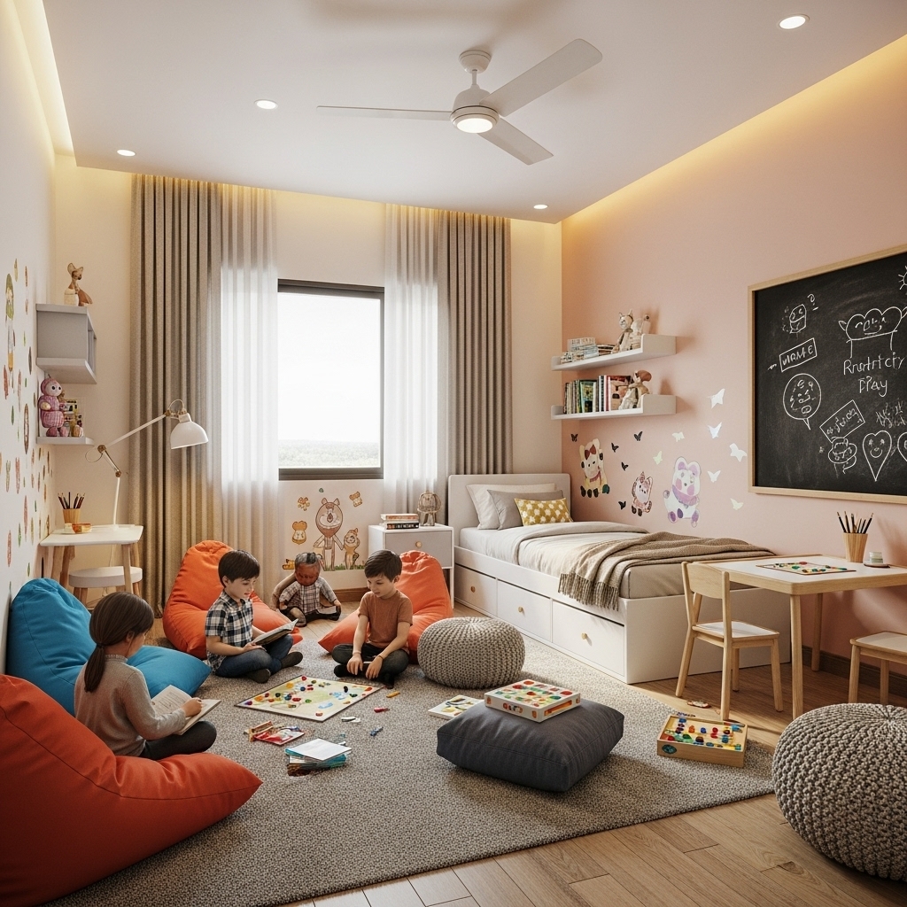 ” Bacchon ka Room – Sirf Pyara Nahi, Smart Bhi! Design Jo Unke Saath Bada Ho, Aur Aapko Chain de “