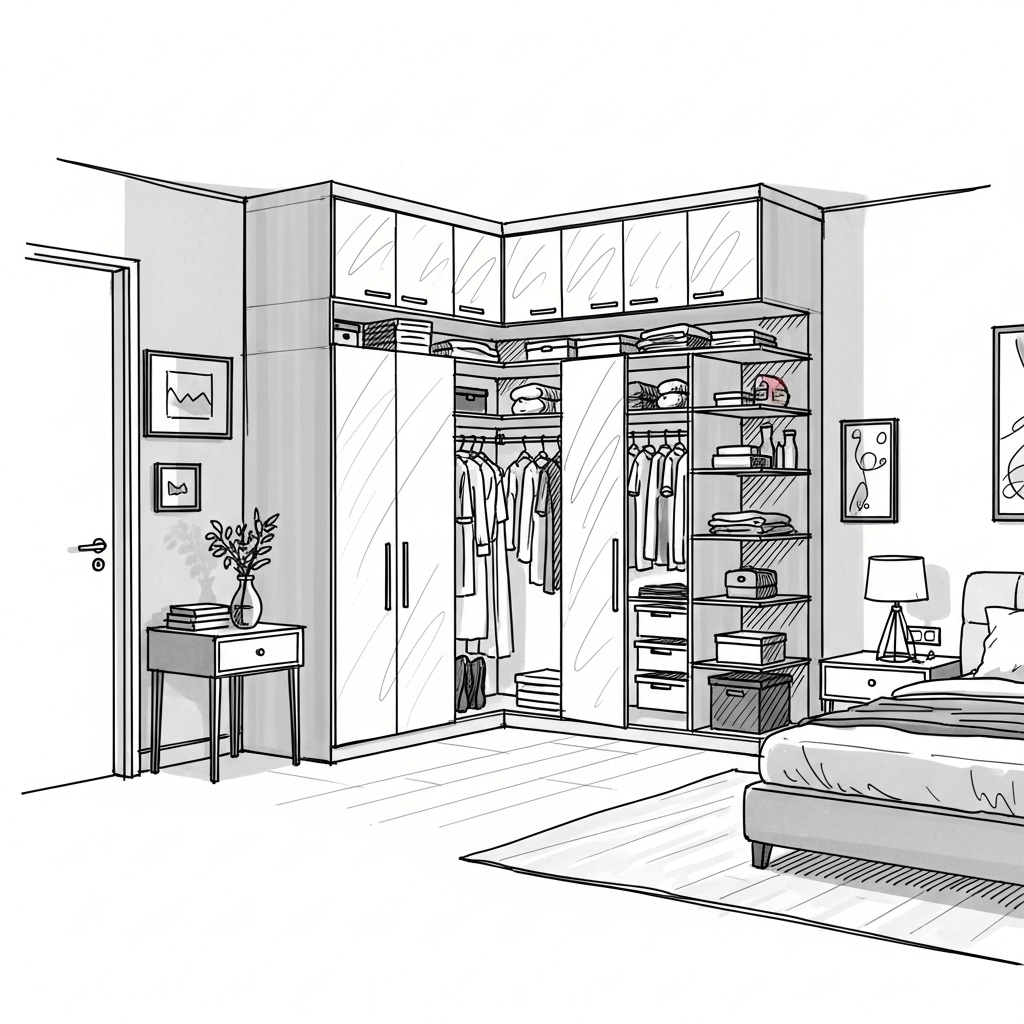 Wardrobe ki chhat ke upar wali khaali jagah bhi kaam aa sakti hai – bas design smart hona chahiye.”