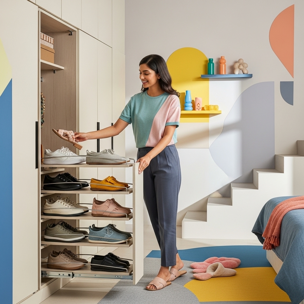 “Pull-out shoe racks = shoes & clothes ka happy marriage.”