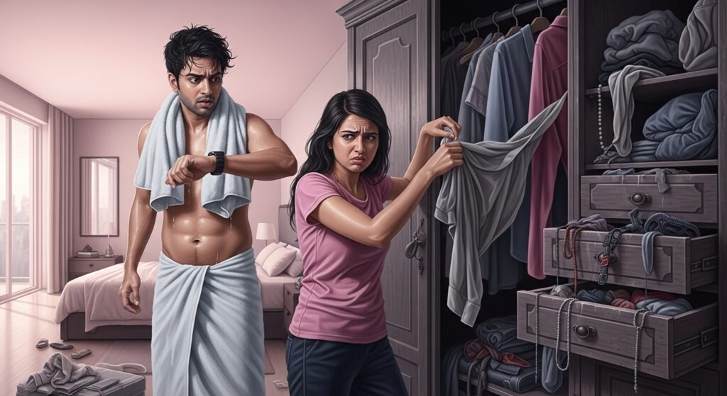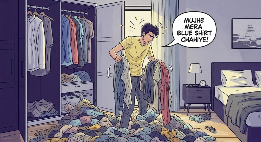“Subah ready hone ka sabse bada challenge kya hai? Outfit select karna? Nahi! Us outfit ko apne wardrobe mein dhoondhna!“Kapde kahaan rakhoon? Yeh sweater toh summer mein kyun milta hai? Shoes matching kahan gaye? Aur wardrobe ka darwaza kholte hi bed se takkar kaun khata hai? — Sounds familiar?”